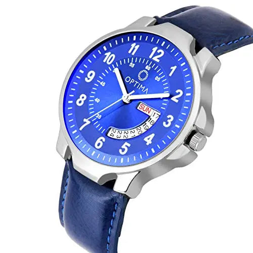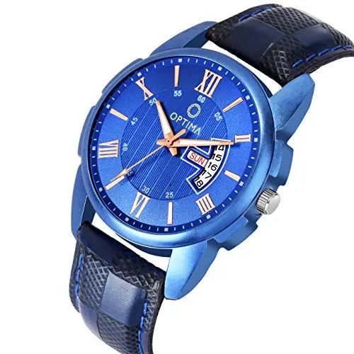 Optima Watch Men's Fashion Water Resistant Sports Slim Analogue Quartz Stainless Steel Leather Watches Mens Bracelet (Blue)