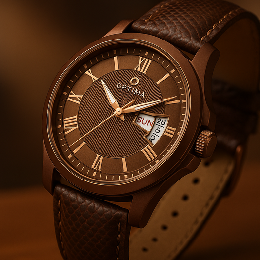 OPTIMA Day&Date Men's Brown Dial Watch – Classic Style, Everyday Comfort