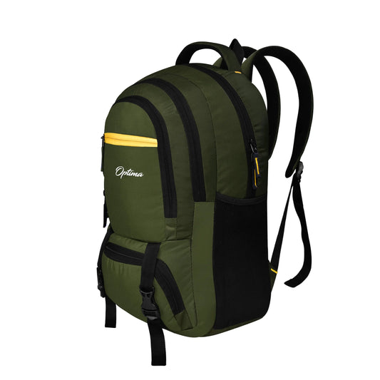Optima Casual Backpack 28L, 2 Main Compartments, Bottle Pocket, Front Pocket, Padded Shoulder Strap-Green