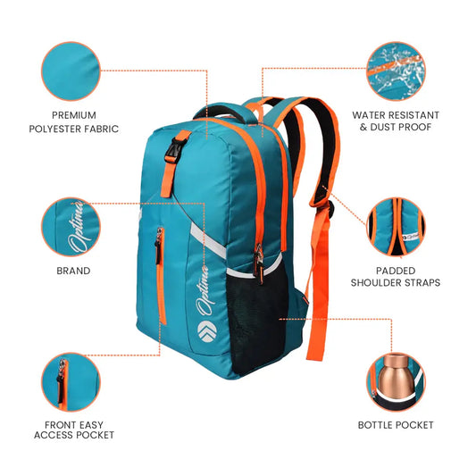 Optima Casual Backpack 28L, 2 Main Compartments, Bottle Pocket, Front Pocket, Padded Shoulder Strap-