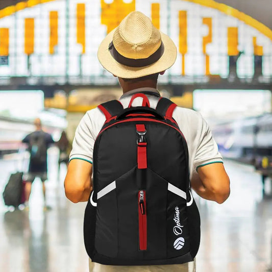 Optima Casual Backpack 28L, 2 Main Compartments, Bottle Pocket, Front Pocket, Padded Shoulder Strap(Red)