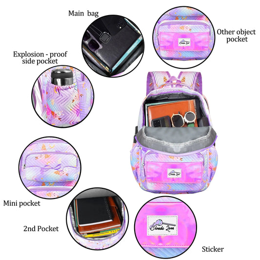 Clouds Love School Bag for Girls Kids Stylish Waterproof Girls School Bag Fashionable Large Capacity School Backpack for Girls Gift School Bag for Kids Girls (6-12 Years Old)Purple