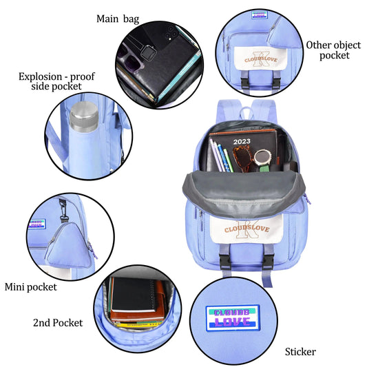 Clouds Love School Bag|Tuition Bag|College Backpack|ForGirls&Women|Waterproof Bag (Blue)