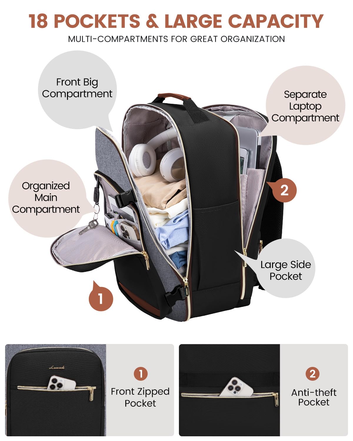 • Versatile & Airline Approved: Measuring 18*14*8 inches, this backpack fits effortlessly under the seat or in overhead compartments, approved by major budget airlines like Spirit and JetBlue.