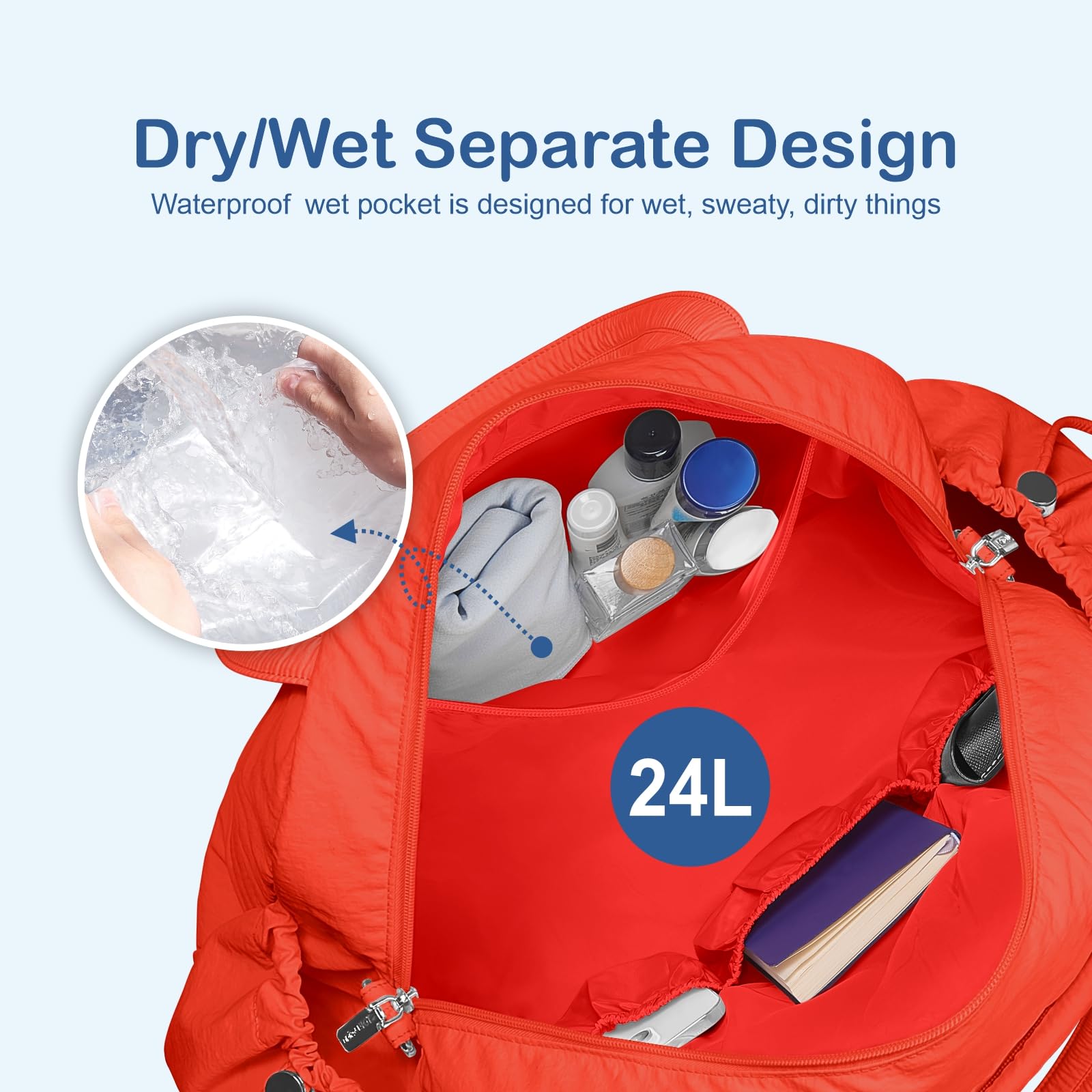 Optima Premium Travel Duffel Bag - Large Puffer Gym Tote with Wet Pocket