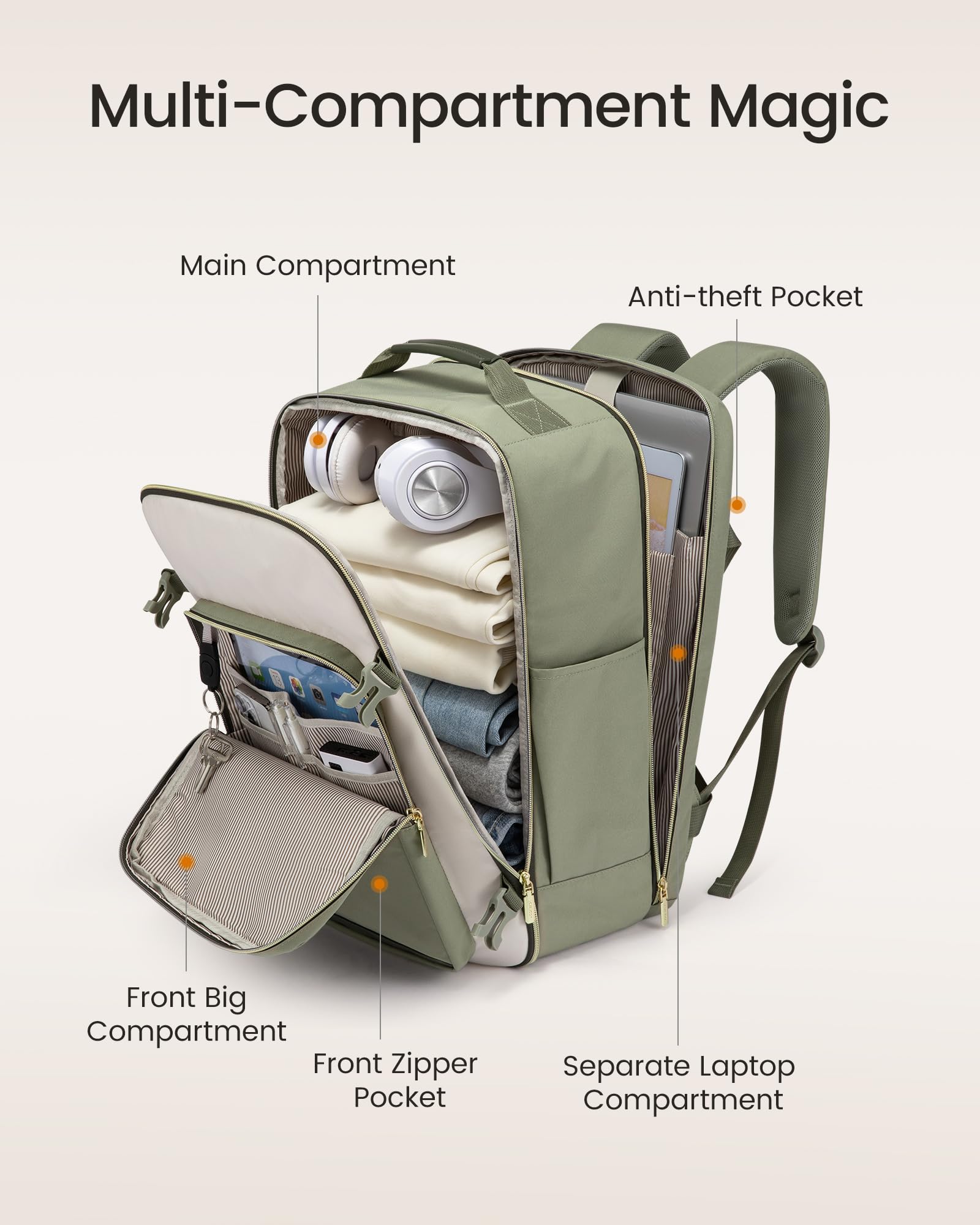 • Spacious & Organized: With a generous 40L capacity and multiple compartments, you can easily separate and organize your travel essentials, accommodating 3-7 days worth of items.